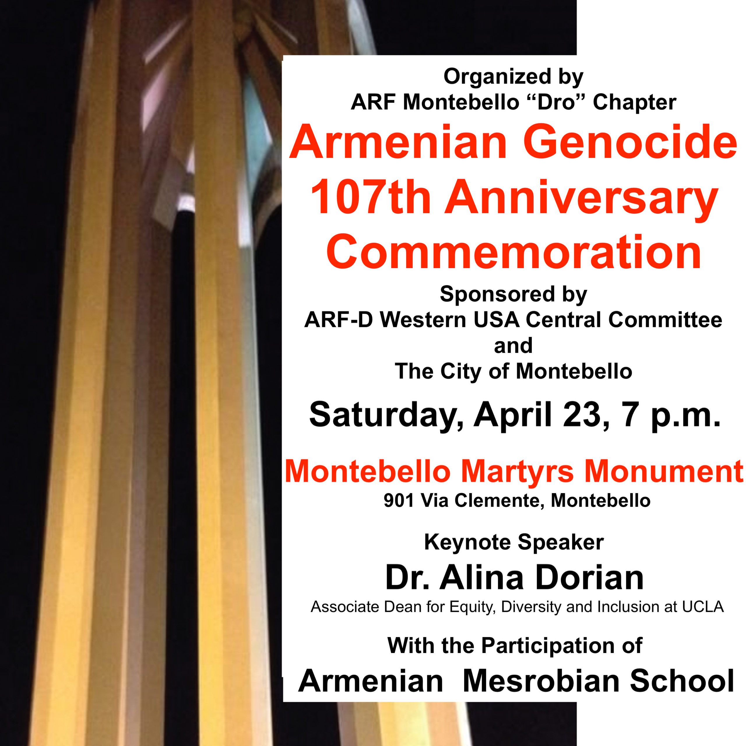 ASAs participating in this year’s Stain of Denial include those based at Cal Poly Pomona, Cal State Los Angeles, Cal State Northridge, the Claremont Colleges, Glendale Community College, Los Angeles Valley College, Loyola Marymount University, Occidental College, Pasadena City College, Santa Monica College, UC Los Angeles, UC Irvine, UC Riverside, UC San Diego, UC Santa Barbara, UC Santa Cruz, and the University of Southern California. For the first time in its history, Stain of Denial will also include universities outside of California as well: Armenian students at Northeastern and Tufts Universities located in Boston, Massachusetts and Grand Valley State University in Allendale, Michigan will be participating.
